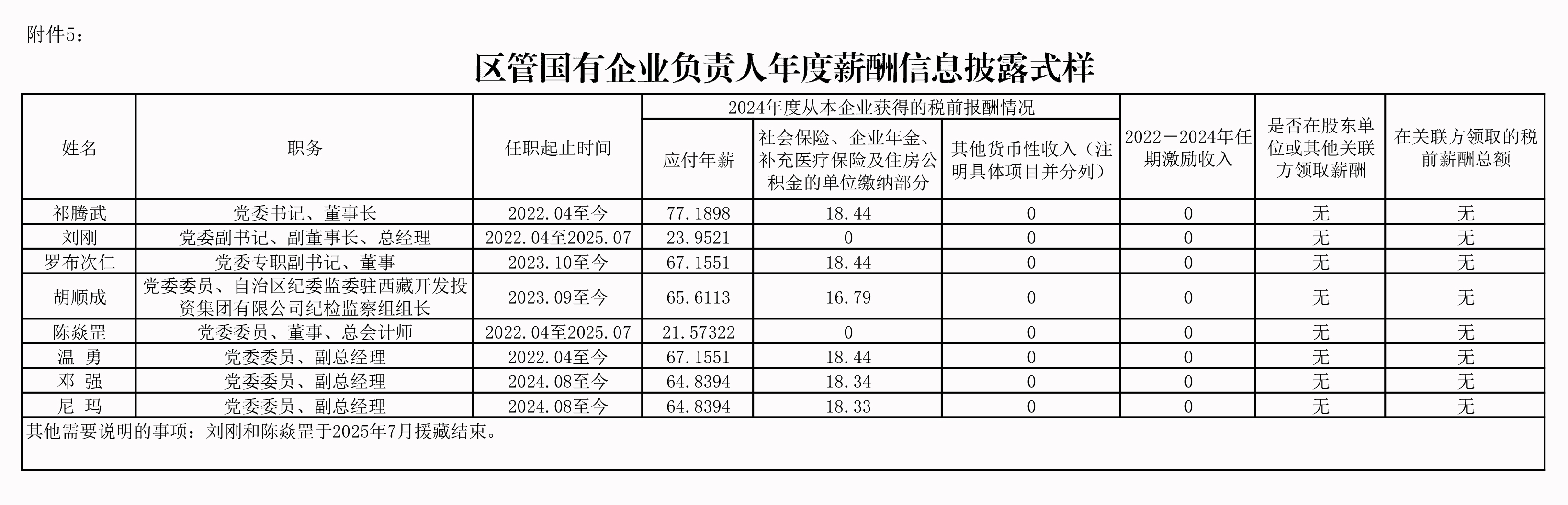 區(qū)管國有企業(yè)負(fù)責(zé)人年度薪酬信息披露式樣
