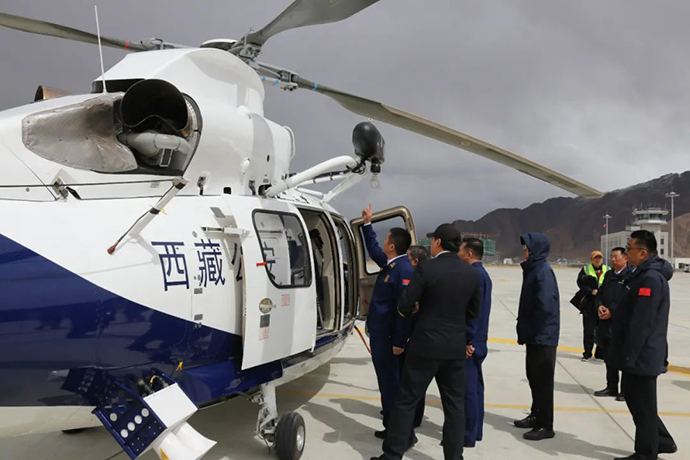 祁騰武指出,西藏各類自然災(zāi)害多發(fā)頻發(fā),消防應(yīng)急救援任務(wù)繁重,要堅決貫徹落實黨中央和區(qū)黨委政府關(guān)于消防救援和通航產(chǎn)業(yè)發(fā)展的決策部署,堅持人民至上、生命至上,聚焦穩(wěn)定、發(fā)展、生態(tài)、強邊“四件大事”,提高政治站位,立足職能定位,全力服務(wù)保障我區(qū)全任務(wù)、全地域、全要素應(yīng)急救援任務(wù)開展。一是要確保安全。消防應(yīng)急救援的專業(yè)性很強、危險系數(shù)也很高,要樹牢安全發(fā)展理念,增強紅線意識,堅持底線思維,落實好安全生產(chǎn)責(zé)任制,強化設(shè)備安全性能測試,常態(tài)化開展融合訓(xùn)練,確保救援裝備安全運行。二是要深化合作。要立足航空消防救援方向,加強與自治區(qū)消防救援總隊、設(shè)備生產(chǎn)制造企業(yè)、科研機構(gòu)的深度合作,統(tǒng)籌資源力量,創(chuàng)新工作模式,做好經(jīng)驗總結(jié)推廣,力爭把不斷涌現(xiàn)的應(yīng)急救援新技術(shù)、新裝備運用到全區(qū)應(yīng)急救援各領(lǐng)域。三是要加快落地。AC312E消防救援型直升機的引進使用,區(qū)黨委政府高度關(guān)注,各族群眾翹首以盼,合作各方要積極對接、共同努力,科學(xué)謀劃預(yù)算編報、需求論證、裝備采購、國家航空器報備各項工作,確保盡早交付運行、盡早發(fā)揮效能,切實為維護全區(qū)各族人民群眾生命財產(chǎn)安全和經(jīng)濟社會高質(zhì)量發(fā)展保駕護航。