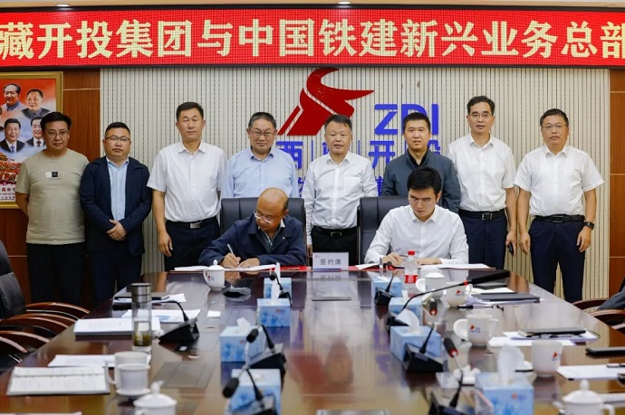 8月15日,西藏開發(fā)投資集團有限公司黨委書記、董事長祁騰武會見來訪的中國鐵建股份有限公司新興業(yè)務總部黨委書記、總經(jīng)理賈洪一行,雙方就加強溝通、深化合作等相關(guān)事宜座談交流并簽訂戰(zhàn)略合作協(xié)議。集團公司領(lǐng)導陳焱罡、鄧強,中國鐵建新興業(yè)務總部副總經(jīng)理李兢、中鐵十四局集團副總經(jīng)理石宗濤等參加座談。