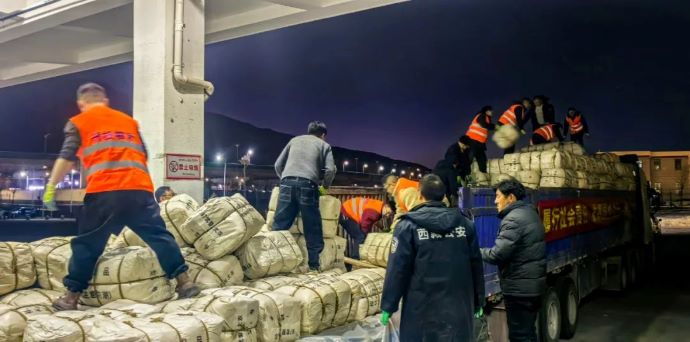 1月9日20點(diǎn),拉薩貢嘎國(guó)際機(jī)場(chǎng)貨站內(nèi)燈火通明,西藏開(kāi)投集團(tuán)20多名工作人員正在緊急卸裝救援物資,一件件棉衣棉被下了飛機(jī)立即裝車(chē),準(zhǔn)備運(yùn)往災(zāi)區(qū)。