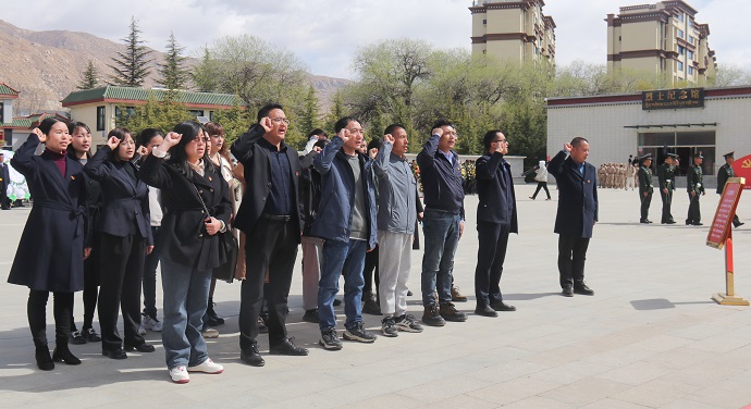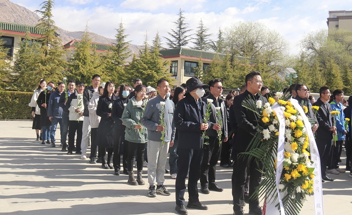 拉薩市烈士陵園內(nèi)松柏蒼翠、莊嚴肅穆。在革命烈士紀念碑前,參加活動的全體黨員職工重溫了入黨誓詞、合唱國歌并敬獻鮮花、清掃陵園,向革命先輩們致以最崇高的敬意和表達無盡哀思與懷念。