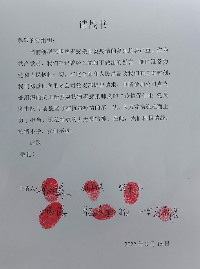(黨員突擊隊請戰(zhàn)書 王強(qiáng)攝)