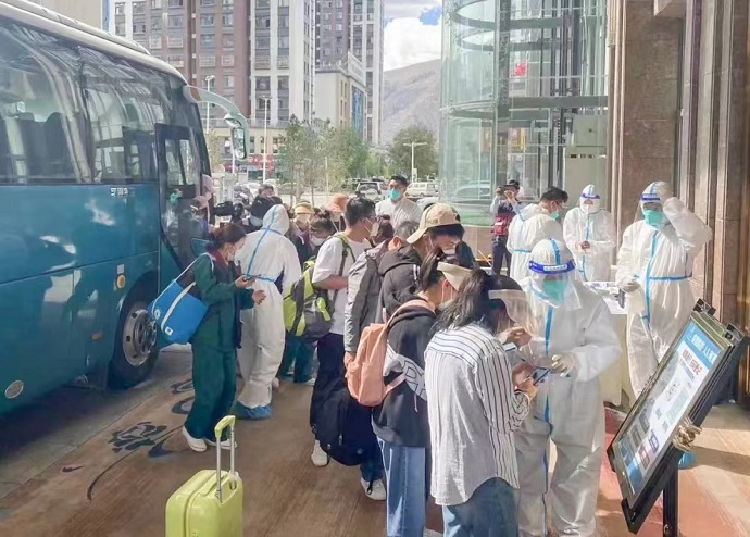 連日來,西藏開投邦錦花園酒店認真落實疫情防控各項措施,對照名冊,嚴把賓客“進店關”。賓客出入酒店第一時間測溫,記錄實時體溫;查看健康碼、行程碼、核酸檢測報告等,筑牢抵御病毒“第一道防線”。