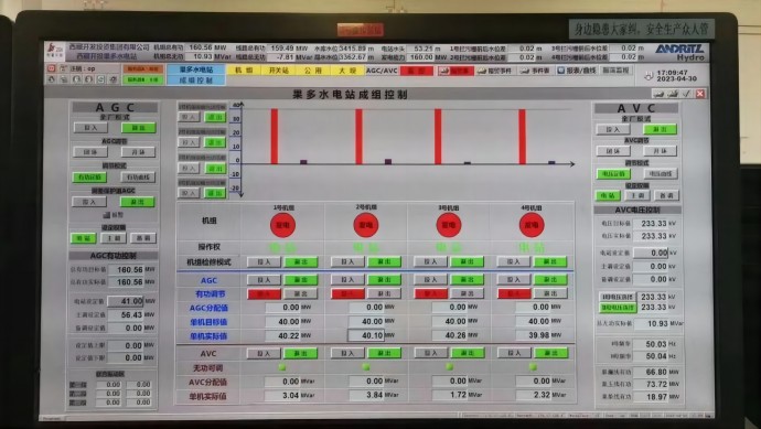 4月30日晚高峰期間,果多水電站4臺(tái)機(jī)組滿負(fù)荷160MW運(yùn)行,各項(xiàng)工況指標(biāo)良好。