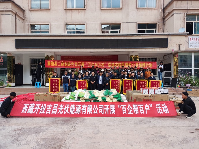 為深入貫徹落實(shí)市委二屆九次全會(huì)精神,落實(shí)《關(guān)于持續(xù)增加農(nóng)牧民收入的十條措施》舉措,9月21日,西藏開(kāi)投吉昌光伏能源有限公司組織開(kāi)展“百企幫百戶”結(jié)對(duì)幫扶活動(dòng)。察雅縣工商聯(lián)主席鄧增旺扎、西藏開(kāi)投吉昌光伏能源有限公司執(zhí)行董事李玲出席活動(dòng)。