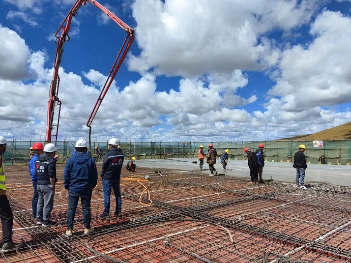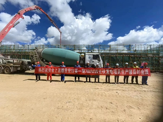 9月28日,隨著生產(chǎn)樓屋面板最后一平方米混凝土澆筑完成,金上昌都貢覺拉妥一期700MW光伏項(xiàng)目生產(chǎn)樓順利封頂,項(xiàng)目參建單位辛苦勞作成果終于可以交上第一份答卷。