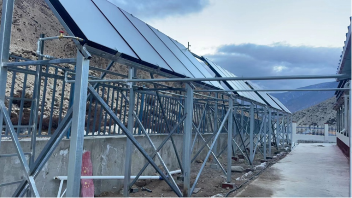 日喀則市定日縣曲當(dāng)鄉(xiāng)德吉村、優(yōu)帕村、嚴(yán)曲村位于珠穆朗瑪峰自然保護(hù)區(qū)核心區(qū),均為定日縣偏遠(yuǎn)邊境鄉(xiāng)村。項(xiàng)目供暖總面積為593.39m2,包括太陽(yáng)能集熱器系統(tǒng)、輔助熱源(空氣源熱泵),儲(chǔ)熱系統(tǒng)、末端設(shè)施,光伏發(fā)電系統(tǒng),建筑節(jié)能改造等內(nèi)容。在日喀則市發(fā)改委的領(lǐng)導(dǎo)下,南亞公司(西藏開投下屬二級(jí)公司)以人為本、科學(xué)管理、精心組織,克服設(shè)備運(yùn)輸艱難、人員組織困難、施工機(jī)械短缺、項(xiàng)目工期緊張等種種困難,如期實(shí)現(xiàn)了項(xiàng)目投產(chǎn)。同時(shí),為評(píng)估和提升項(xiàng)目效能,配套了PLC自控柜,對(duì)供暖數(shù)據(jù)進(jìn)行遠(yuǎn)程收集及數(shù)據(jù)分析。在本項(xiàng)目運(yùn)行一個(gè)采暖期后,將對(duì)項(xiàng)目的規(guī)模效益、財(cái)務(wù)效益、綜合效益進(jìn)行綜合評(píng)價(jià),并對(duì)清潔能源供暖方式替代傳統(tǒng)燃料的減碳效果進(jìn)行科學(xué)分析,確保形成村居供暖工程可靠性好、性價(jià)比高、適宜推廣的決策方案,為全面復(fù)制推廣實(shí)施全區(qū)農(nóng)牧區(qū)清潔供暖供熱項(xiàng)目做出貢獻(xiàn)。