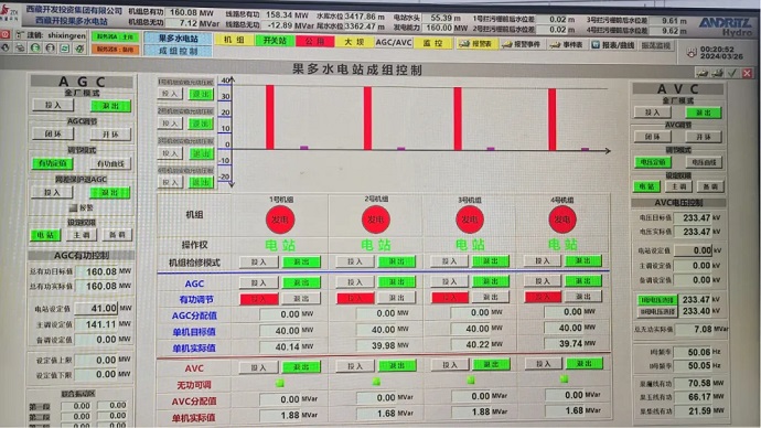 3月26日凌晨,果多水電站4臺機(jī)組滿負(fù)荷160MW運(yùn)行,各項(xiàng)工況指標(biāo)良好。