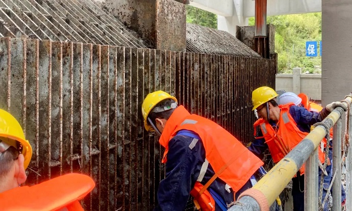 5月31日,金橋水電公司聞“汛”而動,迅速投入到攔污柵清污工作中。大家分工合作,相互配合,通過采取多種方法,經(jīng)過6個小時的辛勤勞作,清除了兩孔攔污柵全部堵塞物,確保了進水口攔污柵“零”壓差,保障了金橋水電站的正常運行和發(fā)電安全,同時也為2024年公司安全度汛奠定了基礎(chǔ)。