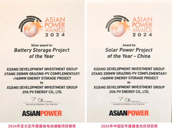 10月22日,2024年度亞洲能源大獎(jiǎng)(2024 Asian Power Awards)獲獎(jiǎng)名單在新加坡正式揭曉,由西藏開投吉雅光伏公司主導(dǎo)建設(shè)并運(yùn)營的吉塘200MW+160MWh儲(chǔ)能牧光互補(bǔ)復(fù)合型光伏項(xiàng)目榮膺“2024年亞太區(qū)年度最佳電池儲(chǔ)能項(xiàng)目銀獎(jiǎng)”和“2024年中國區(qū)年度最佳光伏項(xiàng)目獎(jiǎng)”兩項(xiàng)大獎(jiǎng)。