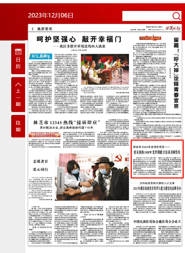 編者按:12月5日,西藏日報第二版高原要聞欄目報道了《那曲市2023年度保供項(xiàng)目—索縣熱熱50MW光伏儲能全容量并網(wǎng)發(fā)電》文章。全文如下: