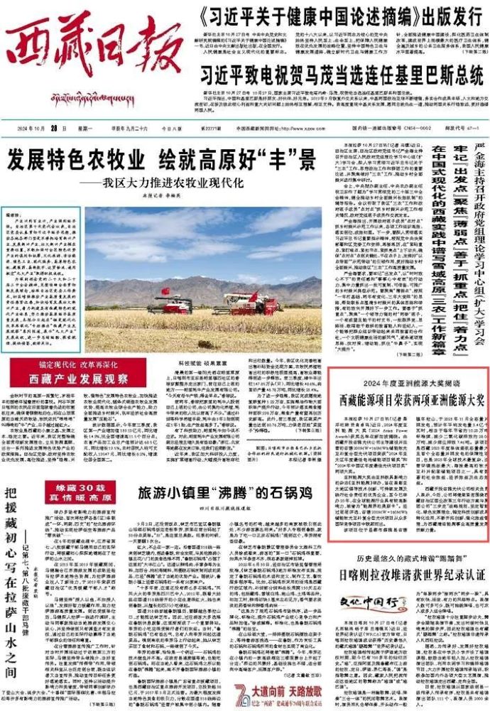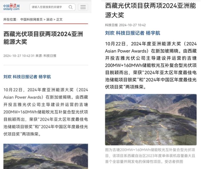 編者按:近日,中國(guó)科技網(wǎng)、科技日?qǐng)?bào)、西藏日?qǐng)?bào)、西藏發(fā)布、中國(guó)西藏新聞網(wǎng)、西藏商報(bào)、昌都發(fā)布等多家媒體集中宣傳報(bào)道了西藏開投吉雅光伏公司榮獲兩項(xiàng)亞洲能源大獎(jiǎng)相關(guān)事宜。摘要如下: