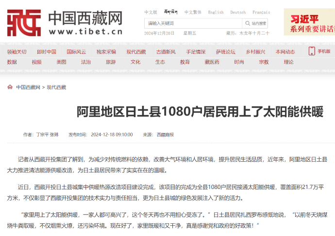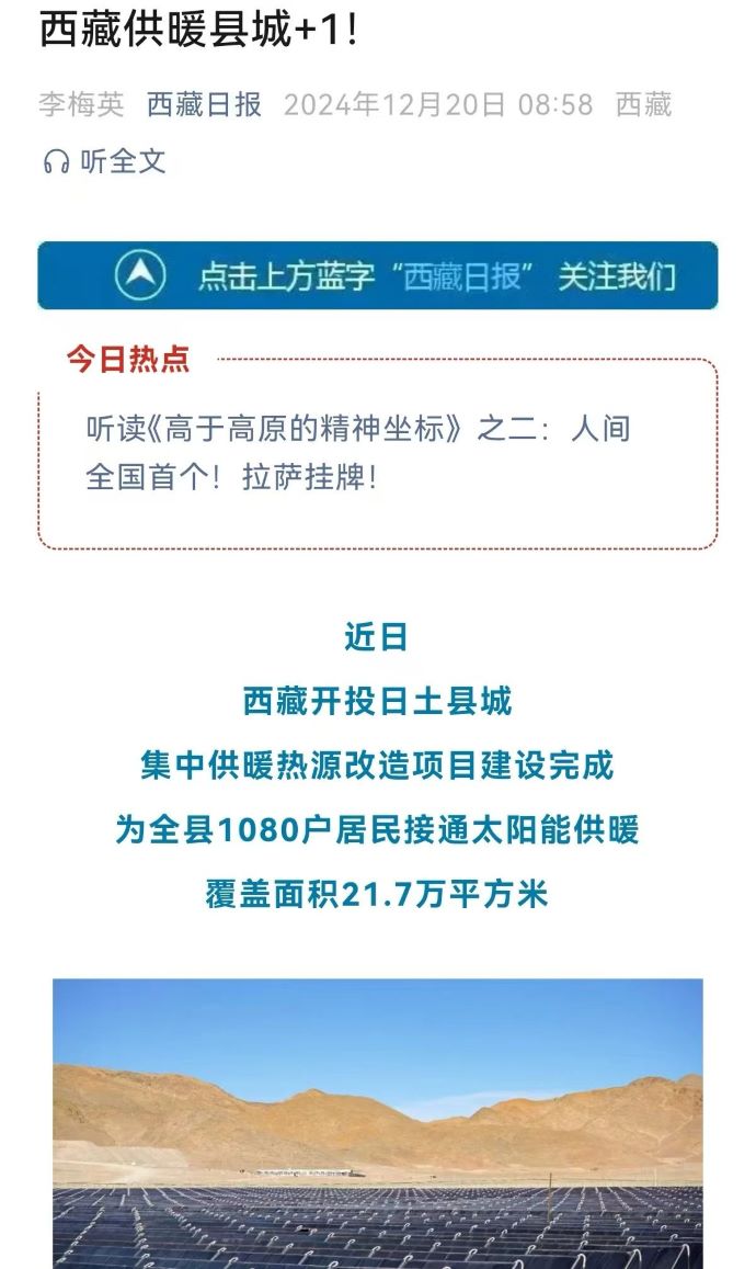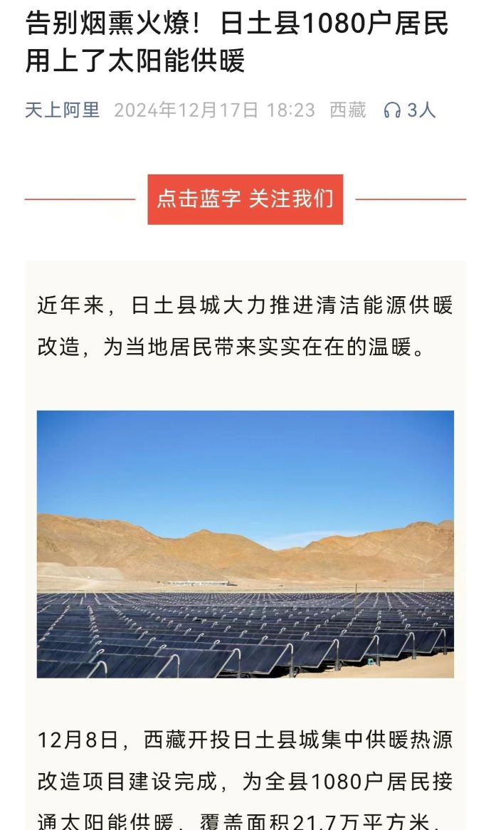 媒體報(bào)道丨告別煙熏火燎!日土縣1080戶居民用上了太陽(yáng)能供暖
