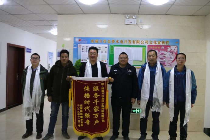 12月4日,尼屋鄉(xiāng)派出所副所長多吉帶領(lǐng)尼屋鄉(xiāng)扶貧車隊(duì)代表將“服務(wù)千家萬戶 傳播時(shí)代強(qiáng)音”錦旗遞送到西藏開投金橋水電開發(fā)有限公司(以下簡稱“金橋公司”)副總經(jīng)理李輝手中,表達(dá)對金橋公司的深深謝意。