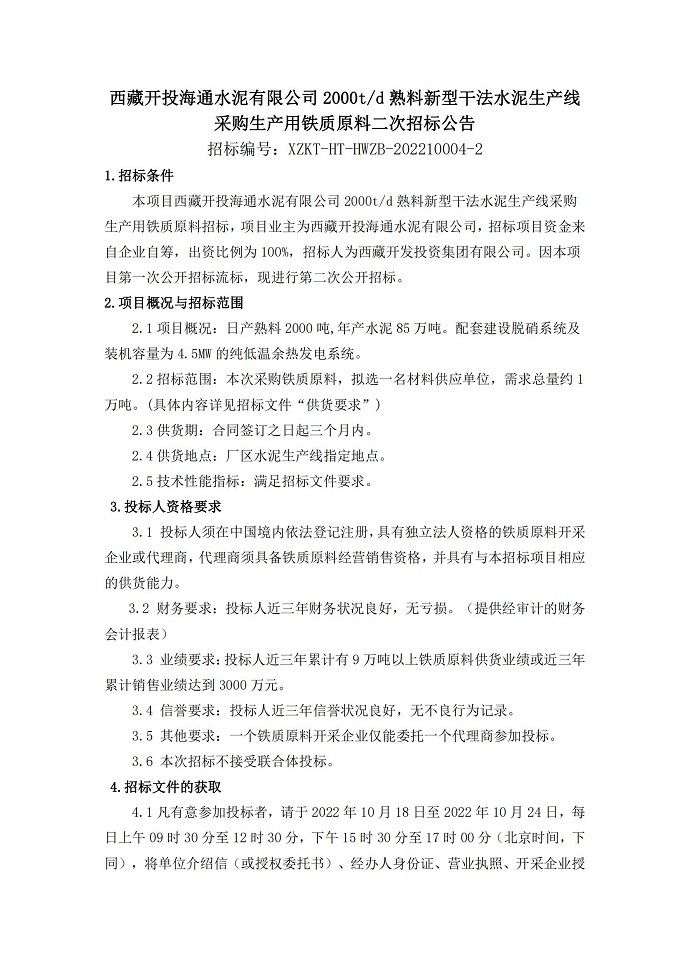 采購生產(chǎn)用鐵質(zhì)原料二次招標公告