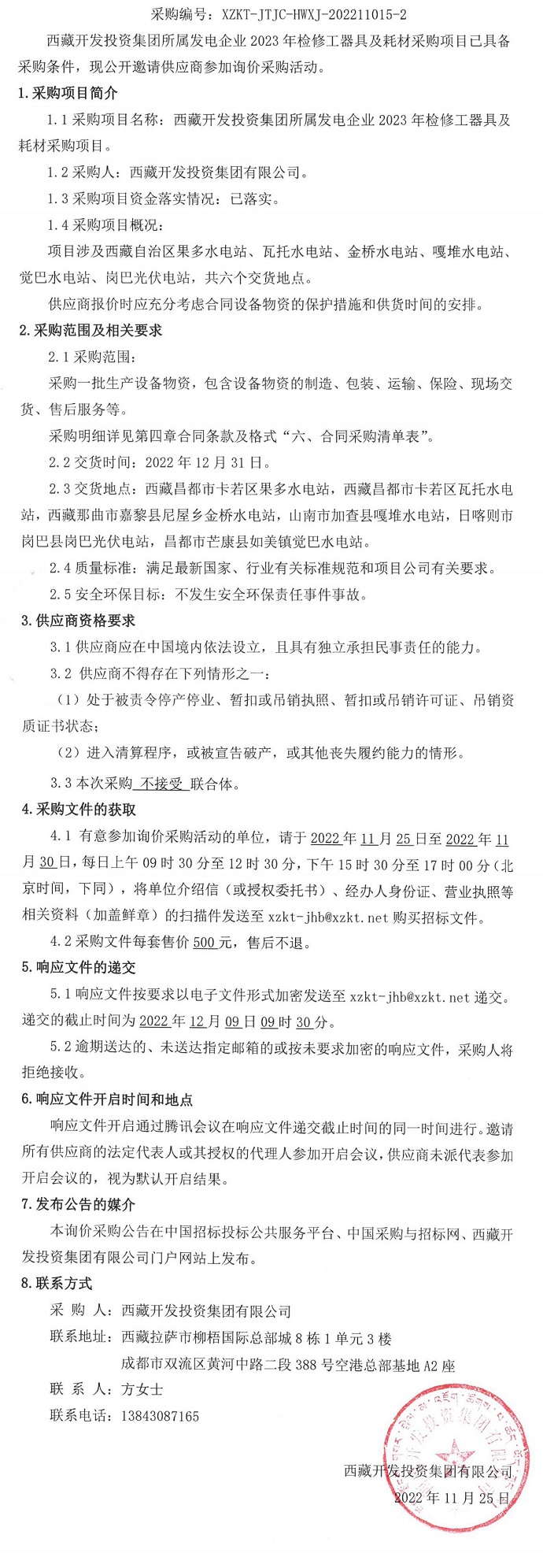 西藏開發(fā)投資集團所屬發(fā)電企業(yè)2023年檢修工器具及耗材