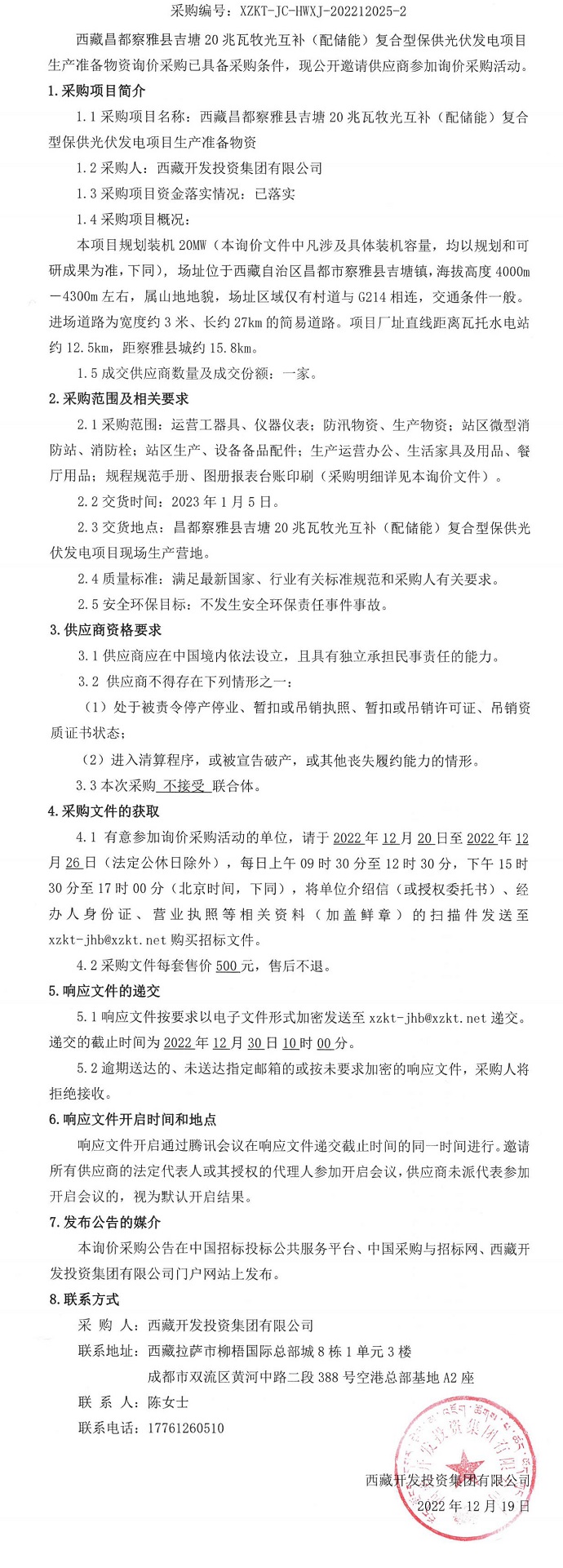 生產(chǎn)準備物資詢價采購二次公告