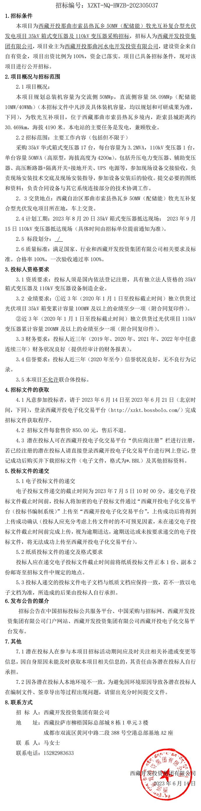 35kV箱式變壓器及110kV變壓器采購招標(biāo)公告