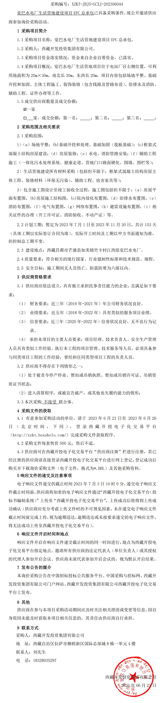 覺(jué)巴水電廠(chǎng)生活營(yíng)地建設(shè)項(xiàng)目EPC總承包詢(xún)價(jià)采購(gòu)公告