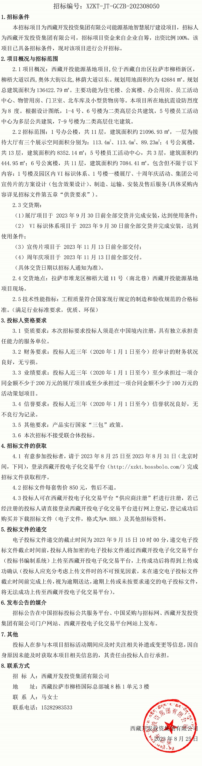 西藏開(kāi)發(fā)投資集團(tuán)有限公司能源基地智慧展廳建設(shè)項(xiàng)目招標(biāo)公告