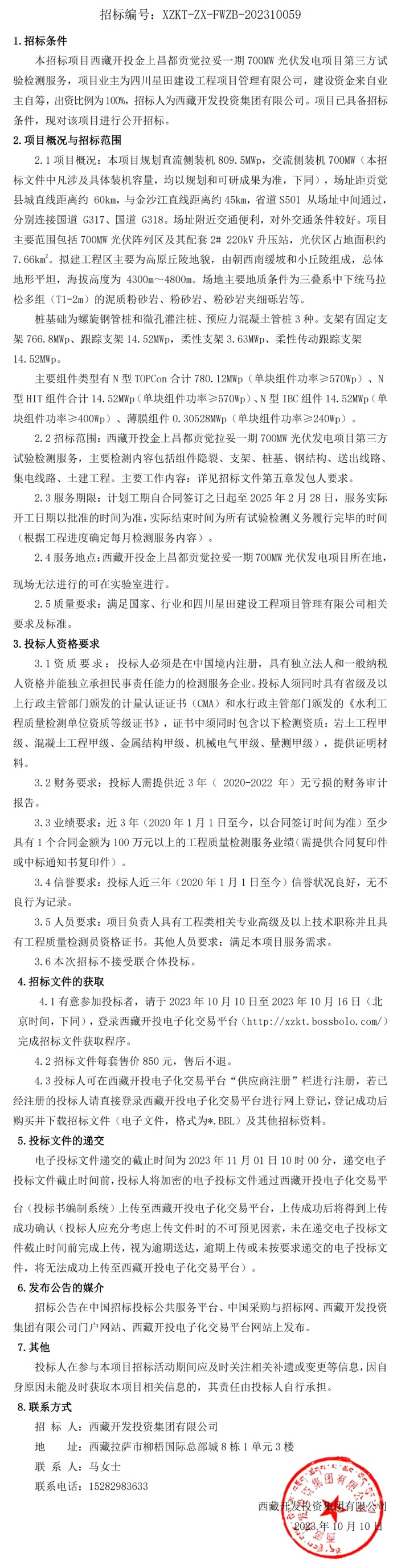 第三方試驗檢測服務(wù)招標公告