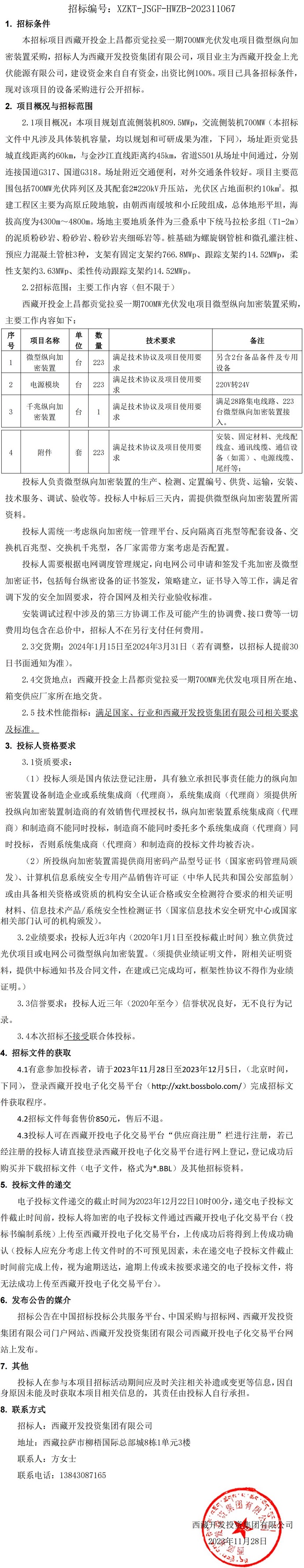 微型縱向加密裝置采購招標公告