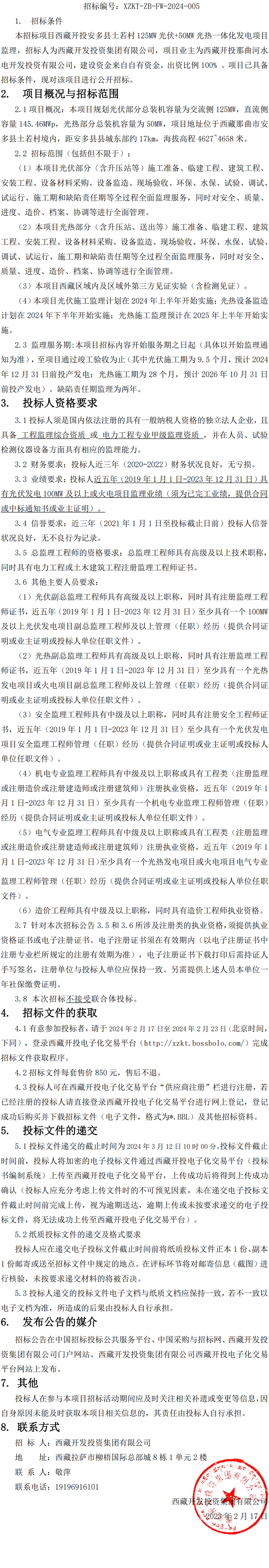 一體化發(fā)電項(xiàng)目監(jiān)理招標(biāo)公告