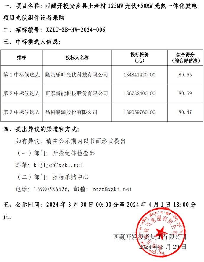 中標(biāo)候選人公示